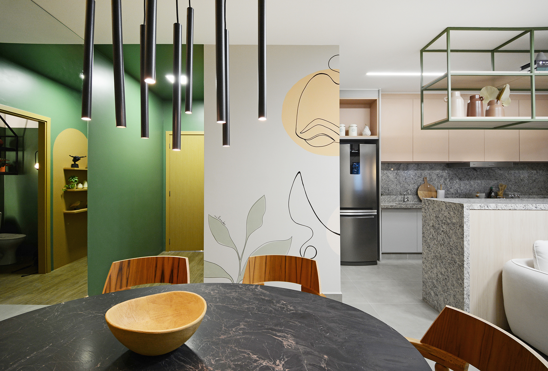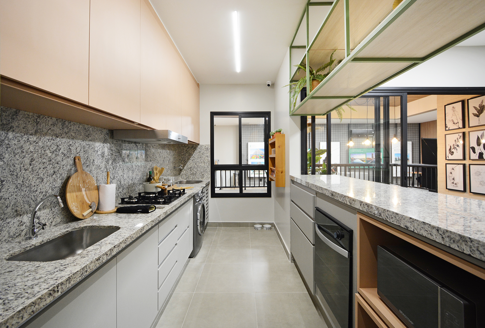 Cozinha com bancada em granito.