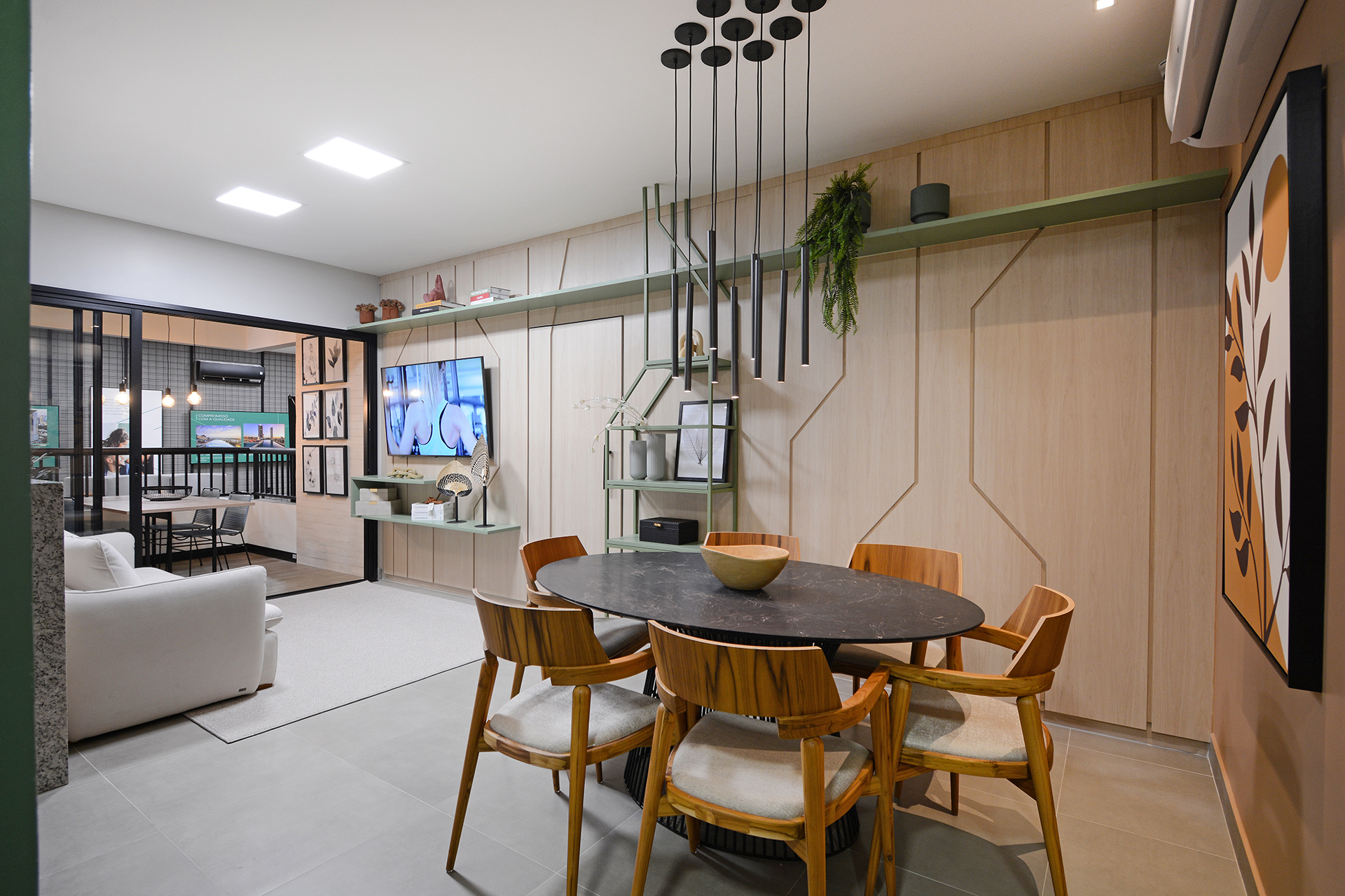 Piso Porcelanato acetinado 60 x 60 no apartamento. Banhos 45 x 45.