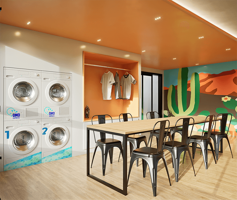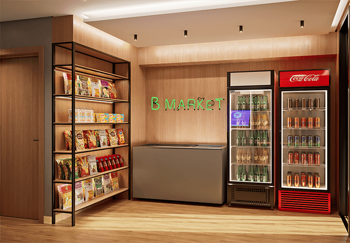 CONVENIÊNCIAS: B.MARKET / STORAGE ROOM / B.WORK / LAVANDERIA OMO / B.WASH / D.I.Y (faça