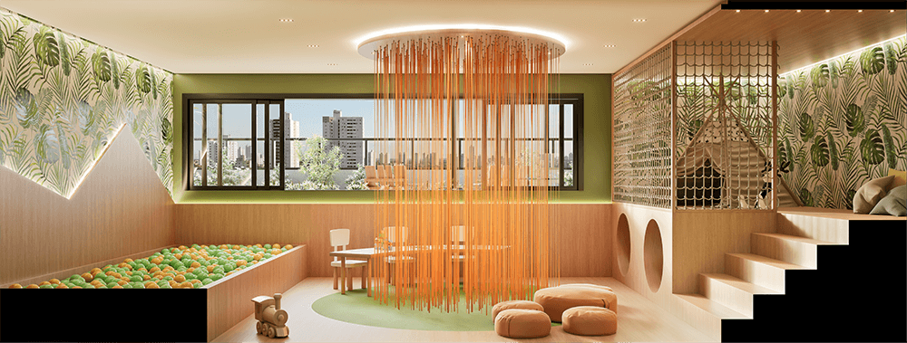 B.Kids – Brinquedoteca climatizada / Playground com brinquedos Erê Lab / B.Play Campinho c/ grama sintética